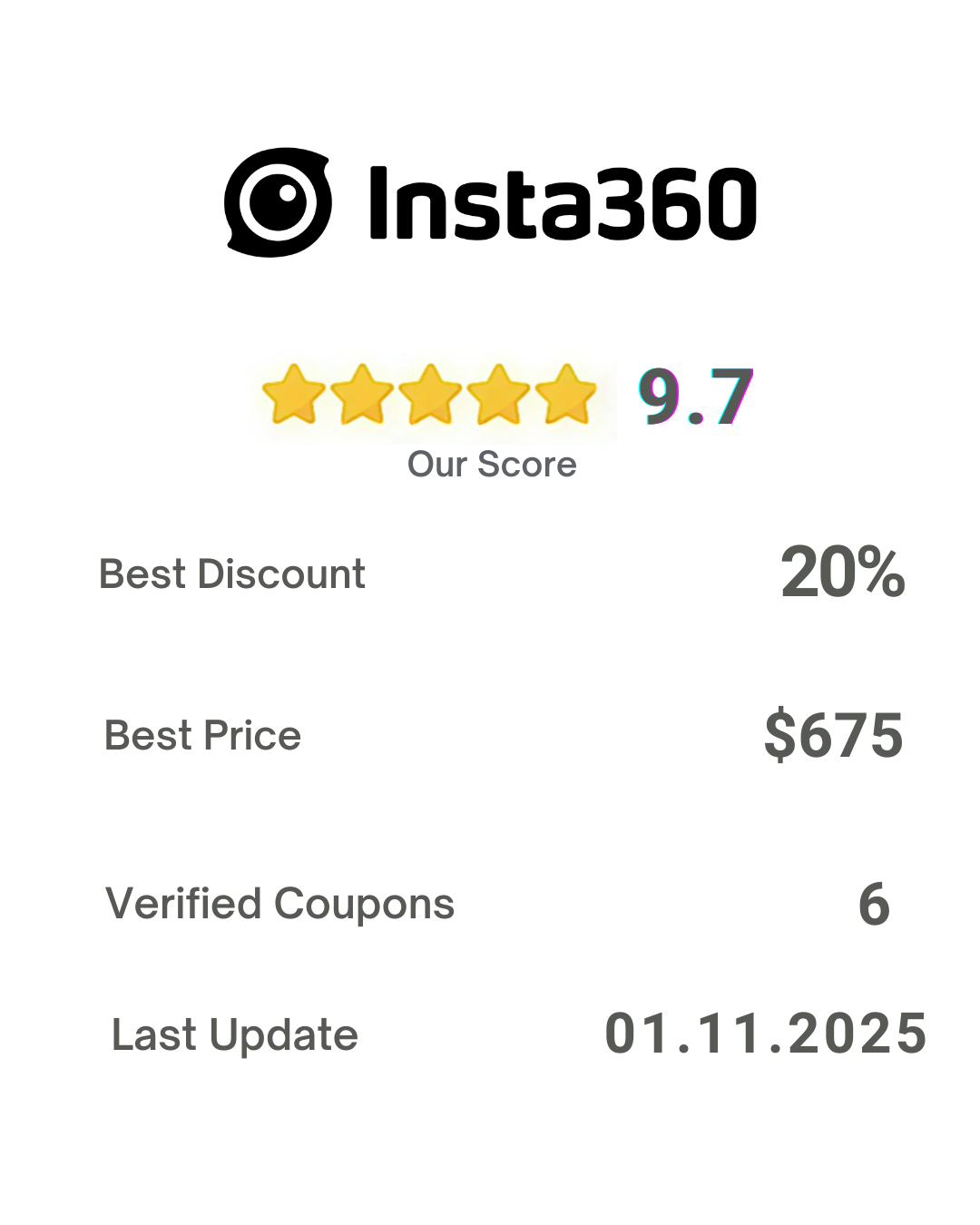Apply your Insta360 coupon during checkout to enjoy up to 25% off cameras, accessories, or bundles without compromising on image quality.